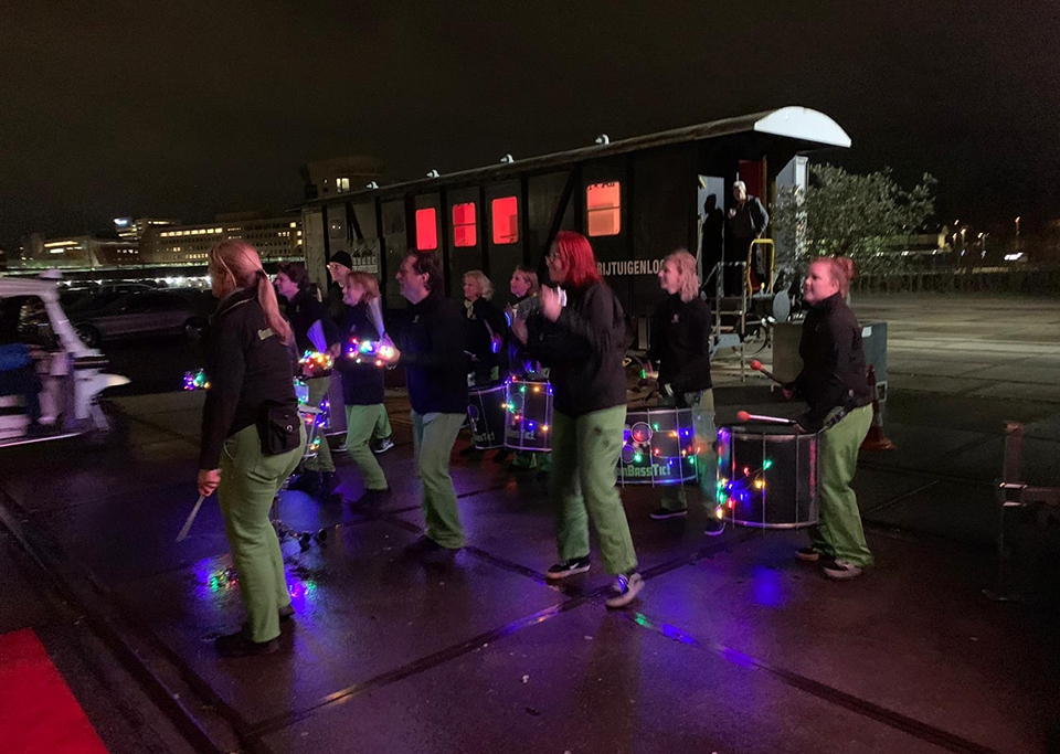 Alles uit de kast! Onder andere: tuk tuks voor vervoer station-locatie, mimespeler, drumband en bobby’s bij de ontvangst, een smartlappenbingo in het bruin café afgewisseld door de DJ’s Kans en Loos en Say Cheese .