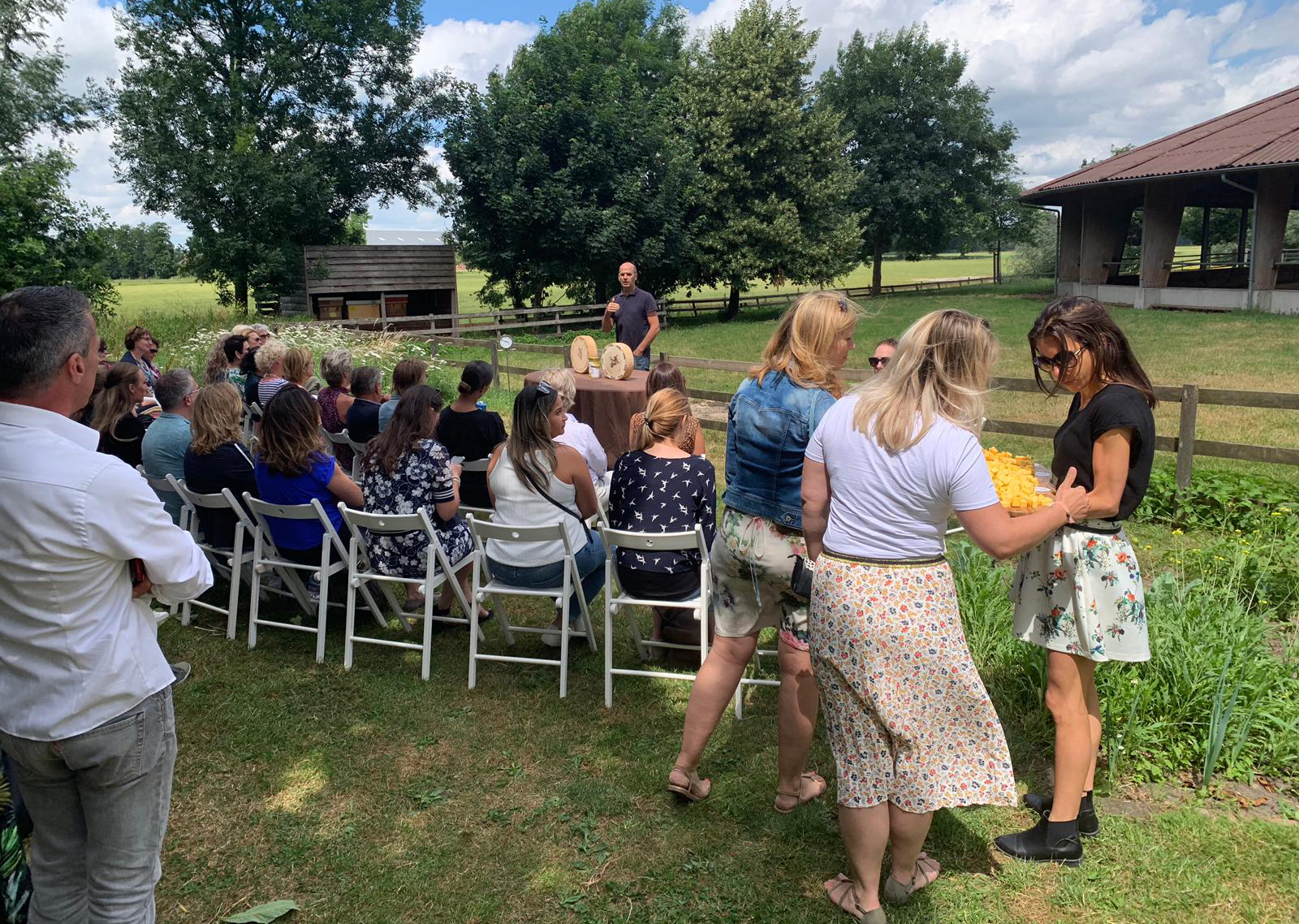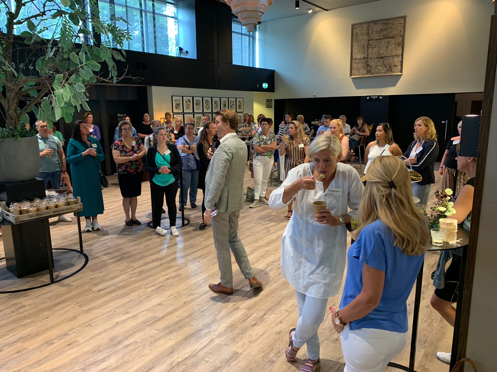 Met twee bussen twee verschillende tours aangeboden. Met de deelnemers van de ‘Large Tour’ zijn we langs de Midden Nederland Hallen en Congrescentrum De Werelt gegaan. Vanaf daar zijn we op de fiets naar Remeker kaas gefietst. Vanaf daar door met de bus naar De Veenderhoeve voor een fruit waste smoothie en Oranjerie Hydepark waar we een presentatie van butler Laurens en een sprinkhanensnack kregen. De ‘Medium Tour’ was iets korter waardoor zij niet naar Oranjerie Hydepark zijn geweest, maar wel alle andere schitterende locaties konden bekijken.